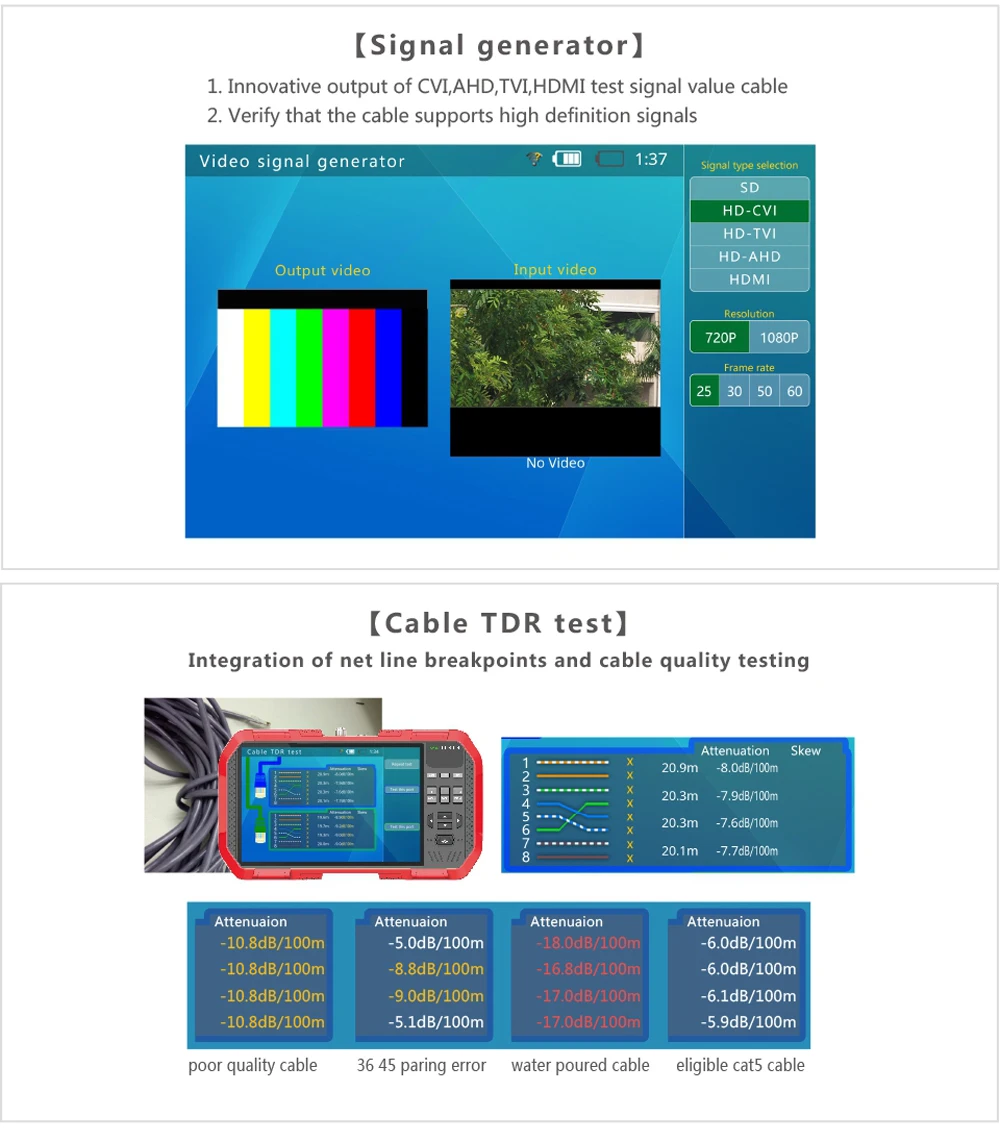 7" H.265 4K IP HD CCTV Tester Monitor AHD CVI TVI Camera Tester 8MP WIFI POE 12V Video Cable Testin