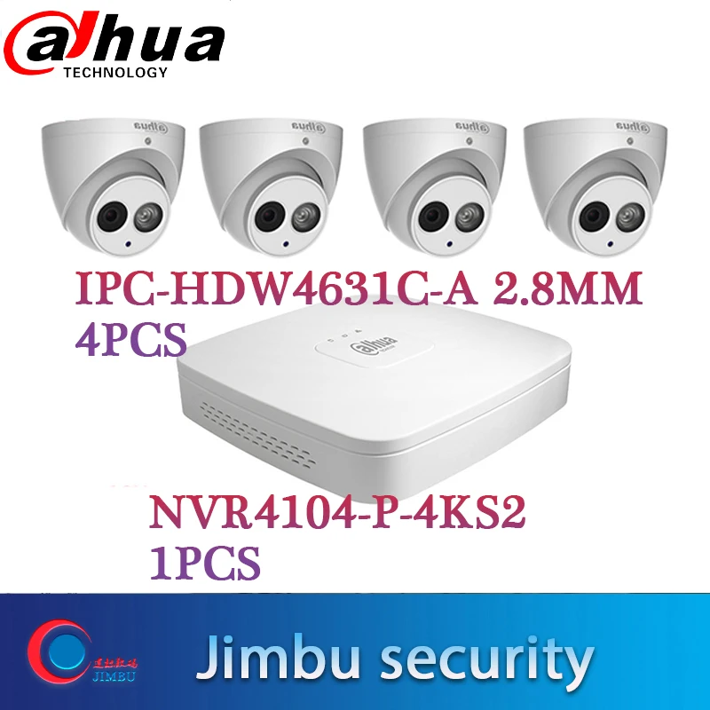 TOP Dahua 4CH cctv system NVR video recorder NVR4104-P-4KS2 & Dahua 6MP IP camera 4pcs IPC-HDW4631C-A H